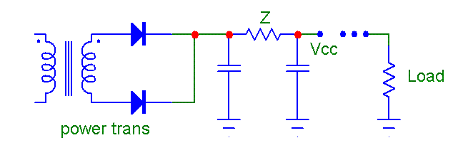 So when designing a power supply, Z has to be considered with respect to the current drawn. If you draw low current, you can get away with high Z but as you draw more juice, then Z better be low!