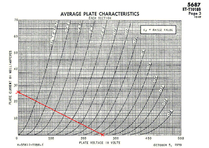 Point #1. Plate Current is zero. This means NO CURRENT at all flowing through the tube. The only way this is possible is that the Plate Voltage is at B+, cos this means there is no voltage drop across the plate resistor, hence zero current. So we have found one point! Please mark at graph, I=0mA, V=260V. Not bad progress for a morning. : )